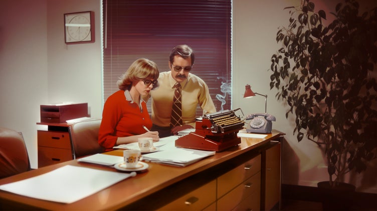 Askkoppar på skrivbordet, yuppienallar och andra tekniska nymodigheter. Kontorskuriosa och kaffekultur. Lagom till TRRs 50-årsjubileum lät vi AI skapa bilder av tidstypiska kontor under TRRs första decennier, från 1970-tal till 2020-tal. Tjänsteman, här har du ditt arbetsliv.